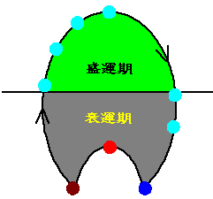 しかし、太陽が頂点にあるのは一瞬のことですぐに下り始める。衰運期を脱出したのではなく、衰運期の難関を一時退避したに過ぎない。梅雨の晴れ間、砂漠でオアシスに到着、日照り続きの夕立に一時の涼を得たたようなもの。いずれも長続きせず、ここを過ぎれば再び冬の時代に戻るので、それに備えるためにも慎重な行動が必要な年となる。
