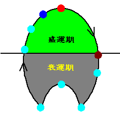 ただ、果実なら完熟、月なら満月状態ゆえ、それ自体は良いことだが、その後は食われるか、欠けて行くのだから、中庸を尊ぶ易の哲理によると決して好ましい状態でないことになる。しかし、9の倍数年前に人生の第一歩を踏み出した同じ年で、だれもが「おめでとう」と云っても「ご愁傷様」と云う人はないのだから、気学では最強運と判断する以外にない。