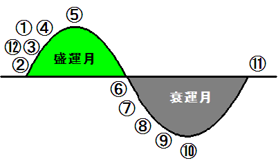 しかし、太陽が頂点にあるのは一瞬のことですぐに下り始める。衰運期を脱出したのではなく、衰運期の難関を一時退避したに過ぎない。梅雨の晴れ間、砂漠でオアシスに到着、日照り続きの夕立に一時の涼を得たたようなもの。いずれも長続きせず、ここを過ぎれば再び冬の時代に戻るので、それに備えるためにも慎重な行動が必要な年となる。